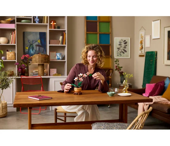 Deze levensechte replica bevat 5 orchideeën in bloei en een paar in de knop, plus bladeren voor een nog realistischer effect. De set wordt ook geleverd met een bloempot in een lichte terracottakleur die op een prachtige sokkel met houteffect staat, waardoor het voor beginnende bloemisten gemakkelijk is om de LEGO plant neer te zetten en een stukje natuur in huis te halen.