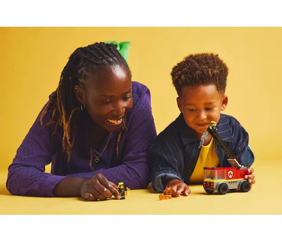 - Brandweerauto met leuke functies voor fantasierijk speelplezier – de truck heeft een bestuurderscabine met 2 zitplaatsen, een ladder die omhoog kan worden gebracht en een speelgoedbrandblusser voor de minifiguren van brandweerlieden