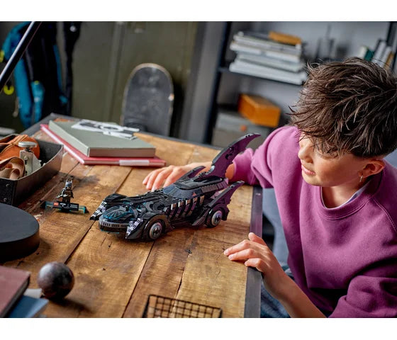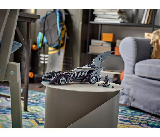 Deze authentieke versie van de opvallende auto uit de film Batman Forever heeft een voorgevormde voorruit, draaiende wielen, decoraties en een cockpit die open kan om een gedetailleerd interieur te bekijken. De set bevat ook een Batman minifiguur met een eigen speciale standaard. Voor digitaal plezier kunnen bouwers inzoomen, modellen in 3D draaien en hun voortgang bijhouden met behulp van de intuïtieve LEGO Builder app. De set bevat 909 onderdelen.