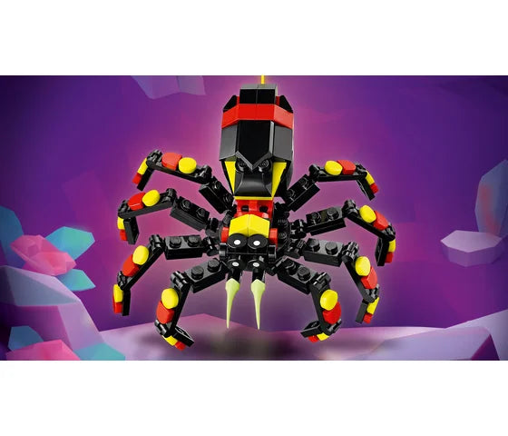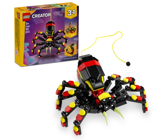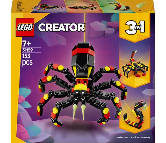 Jongens en meisjes vanaf 7 jaar ontdekken fascinerende wezens met deze Wilde dieren: spannende spin (31159) speelset. De kleurrijke spin heeft 8 verstelbare poten, grote tanden en kinderen kunnen een neongeel web uit de achterkant trekken om hem aan een LEGO® steen te hangen.