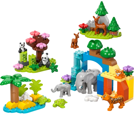 - Fantasierijk speelgoed met 10 LEGO® DUPLO® wilde dieren voor creatieve verhalen – inclusief figuren van een tijger, olifant, hert en panda, elk met een jong dier, en 2 schildpadfiguren