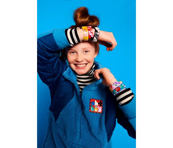 Kinderen kunnen 5 verschillende armbanden maken met de versierde Mickey & Friends tegels. Ze kunnen de armbanden op hun eigen manier aanpassen aan hun stemming of interesses en keer op keer veranderen. Kies voor een klassiek rood-wit-zwart kleurenschema of een meer opvallende kleurrijke armband. Creativiteit kent geen grenzen.