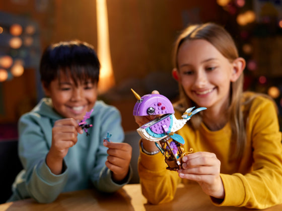 Kinderen vanaf 7 jaar duiken in de fantastische LEGO® DREAMZzz™ wereld met Izzie's narwal-luchtballon (71472). Met deze bouwset, gebaseerd op de spannende tv-serie, kunnen kinderen LEGO DREAMZzz heldin Izzie helpen haar dierenvriendje Bunchu het konijn uit de greep van een enge schurk te redden door een walvisfiguur te bouwen.