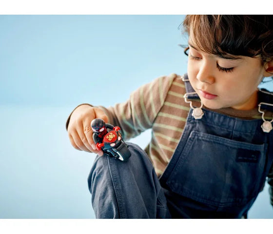 Deze Spidey fantasiespeelset is ideaal voor leuke, korte speelsessies en bevat een LEGO DUPLO Spin figuur, een speelgoedmotor en een bouwbaar hoofdkwartier. Peuters rijden met Spins motor over de bouwbare helling om hem de actie in te sturen. Tijdens de strijd helpen kleine superhelden de speelgoedfiguur van Spin om de vliegende stenen te ontwijken door ze in zijn web te vangen.