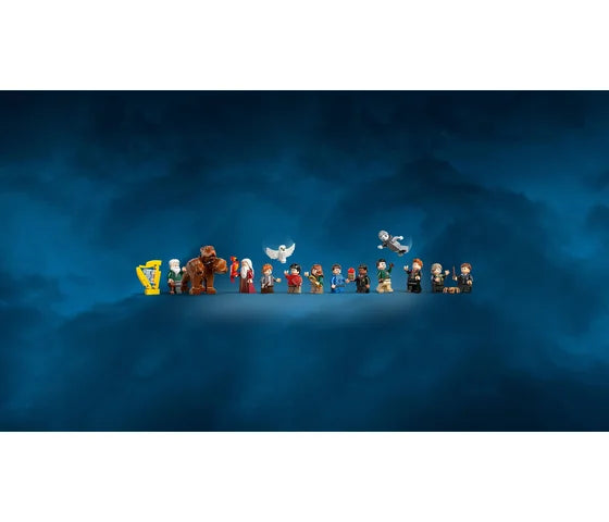- 12 minifiguren – inclusief Harry Potter™, Hermelien Griffel™, Marcel Lubbermans™, professor Staartjes, Haast Onthoofde Henk en Albus Perkamentus™, plus figuren van Pluisje, Hedwig™ en Felix