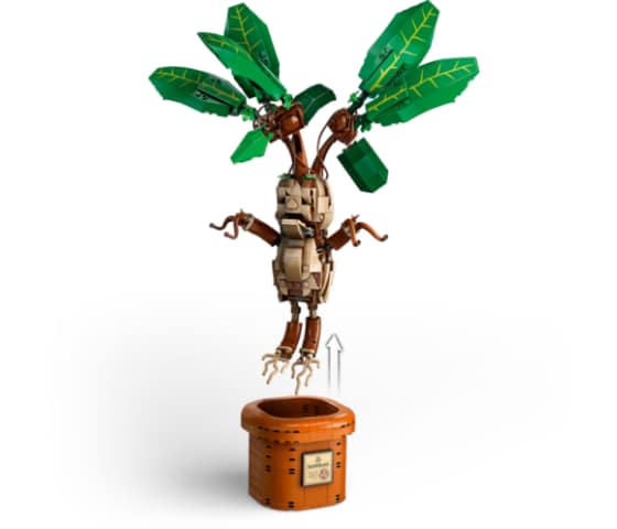 - LEGO® Harry Potter™ Mandragora plant voor een speelse blikvanger – de allereerste LEGO figuur van een Mandragora uit de Kruidenkundeles op Kasteel Zweinstein™