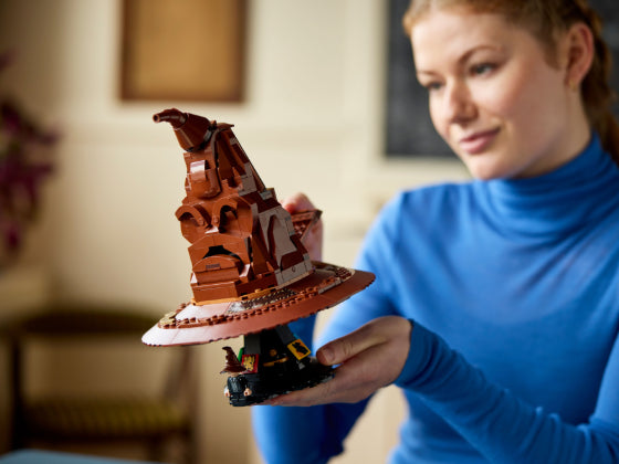 Ga helemaal op in een betoverend bouwproject met deze Zweinstein™ Pratende Sorteerhoed (76429), de allereerste LEGO® Harry Potter™ set met een geluidssteen om dit displaymodel tot leven te brengen. Kantel de bovenkant van de hoed of plaats hem op je hoofd om de stem van de Sorteerhoed te activeren en ontdek welke Zweinstein afdeling hij voor jou selecteert. Luister ook zo nu en dan naar het liedje van de Sorteerhoed.