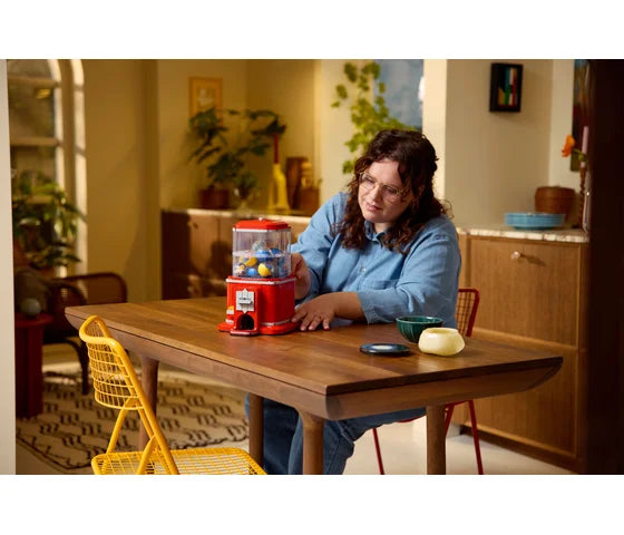 - Authentiek verkoopmechanisme – steek een LEGO® munt in de gleuf, draai aan de hendel om er een capsule uit te laten komen en gebruik de onderdelen om een LEGO minifiguur te bouwen