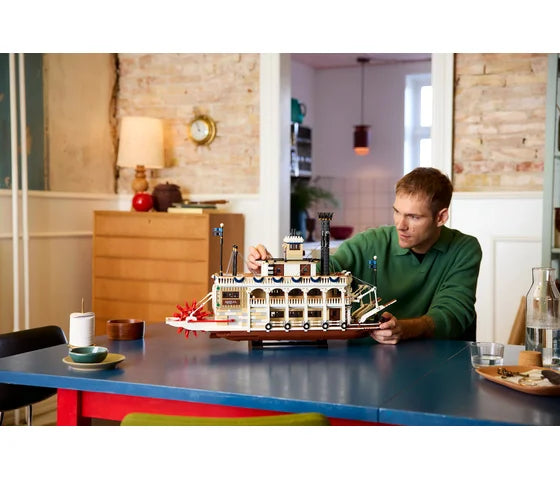 - Nautische decoratie voor thuis of op kantoor – bouw een gedetailleerd LEGO® Ideas displaymodel van een klassieke stoomboot, die is gerenoveerd tot een rondvaartboot met aan boord een stoommachinemuseum
