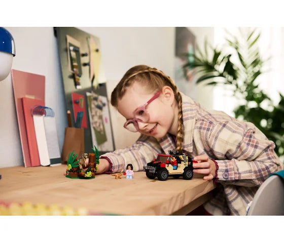 Kinderen en filmfans vanaf 6 jaar beleven verrassende avonturen met deze Offroad raptorontsnapping (76972) LEGO® Jurassic World set, een dinosauruscadeau dat is geïnspireerd op de film Jurassic World Rebirth. Na het bouwen kunnen kinderen hun favoriete filmscènes naspelen en verhalen bedenken met de minifiguren van Reuben en Isabella Delgado, de baby Dolores figuur en een Velociraptor figuur met een beweegbare kaak. De bouwset bevat een terreinwagen en een opsporingsapparaat, een struik met een verrassingsfunctie en nog veel meer.
