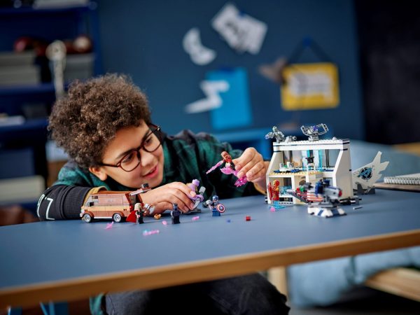 Kinderen komen een reeks supersterren in de vorm van LEGO® Marvel personages tegen bij de basis van de Avengers. De set bevat Iron Mans lab, een ontspanningsruimte, een gevangeniscel en een busje met daarin een tijdmachine.