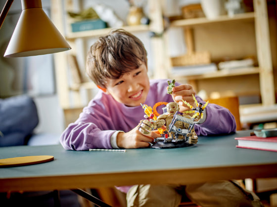 - Bouwbaar LEGO® kinderspeelgoed – jonge Marvel fans kunnen de verstelbare Sandman draaien en zijnenorme handen gebruiken om Spider-Man vast te pakken terwijl hij aan zijn flexibele 'webtouw' boven zijn hoofd zwaait