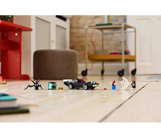De bouwbare Venom speelgoedauto wordt geleverd met 3 minifiguren: Spider-Man met een webblaster, Venom met 4 tentakels en Spider-Woman (Julia Carpenter) met een flexibel web dat groot genoeg is om een schurk te verstrikken. De Venomized auto heeft een schieter aan elke kant, een toegankelijke motor en een cockpit die open kan. Venom kan in de auto zitten door zijn 2 onderste tentakels te verwijderen en deze te gebruiken om de auto verder te Venomizen. Een kluis met goudstaven inspireert rollenspellen tussen de helden en de schurk. De kluis kan worden weggesleept door de auto, die ook een vak voor de goudstaven bevat. Voor nog meer digitaal plezier kunnen bouwers inzoomen, modellen in 3D draaien en hun voortgang bijhouden met de leuke, intuïtieve LEGO Builder app.