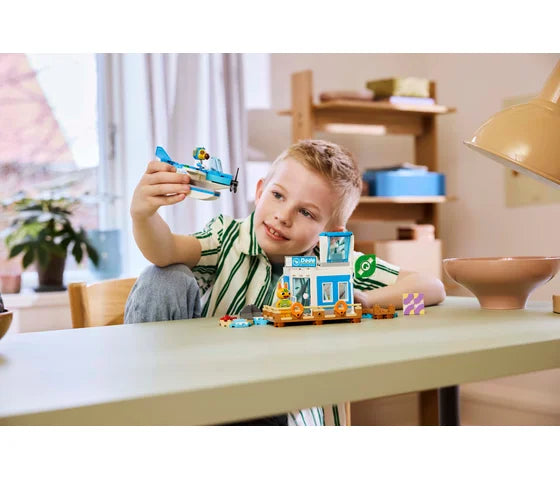 Met deze bouwset kunnen kinderen hun eigen verhalen naspelen in een vertrouwde Animal Crossing omgeving. Het luchthavenspeelgoed heeft een steiger die naar een strand leidt, een verkeerstoren en een oranje hek dat open kan. Zodra kinderen het vliegtuig hebben gebouwd, kunnen ze met een ticket aan boord stappen. Ze draaien aan de propeller van het watervliegtuig en doen alsof ze Wilbur de piloot en Tangy naar een nieuwe eilandbestemming sturen.