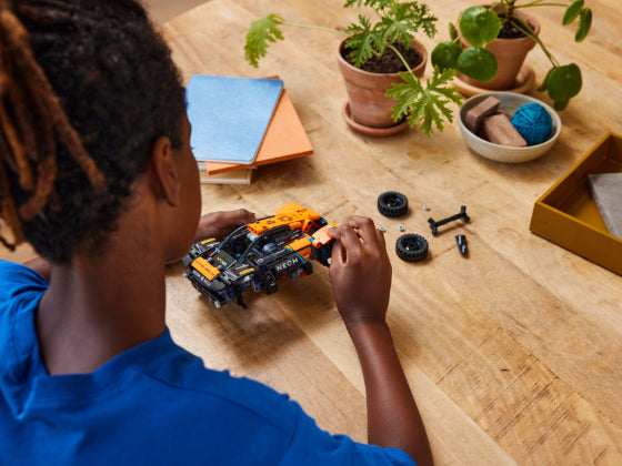 Op zoek naar een cool cadeau voor kinderen? Deze pull-back auto voor jongens en meisjes vanaf 7 jaar zorgt voor spanning bij elke bocht. Kinderen kunnen eerst genieten van het bouwen van de LEGO® Technic NEOM McLaren Extreme E racewagen (42166). Daarna is het tijd om te racen met de auto met behulp van de pull-back functie.
