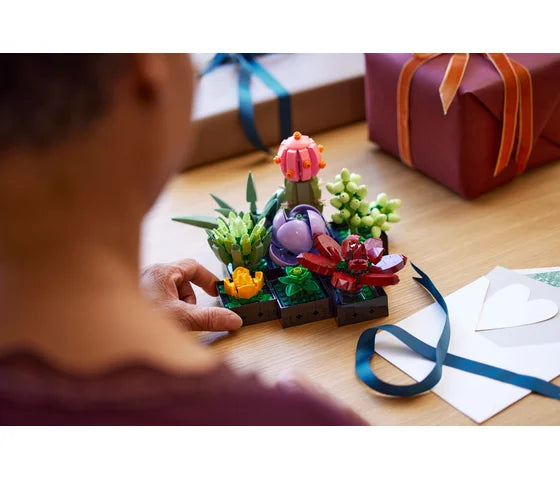 Wil je iets groens in huis halen? Vetplanten zijn helemaal in! Nu kun je met deze LEGO® Vetplanten (10309) bouwset voor volwassenen op een ontspannen manier aan een bouwproject werken, waarbij je een elegant plantenmodel bouwt voor in je huis. Neem rustig de tijd voor alle details van de 9 verschillende vetplantjes, die zijn geïnspireerd op echte soorten. Laat daarna je creativiteit aan iedereen zien met dit fraaie model – water geven is niet nodig.