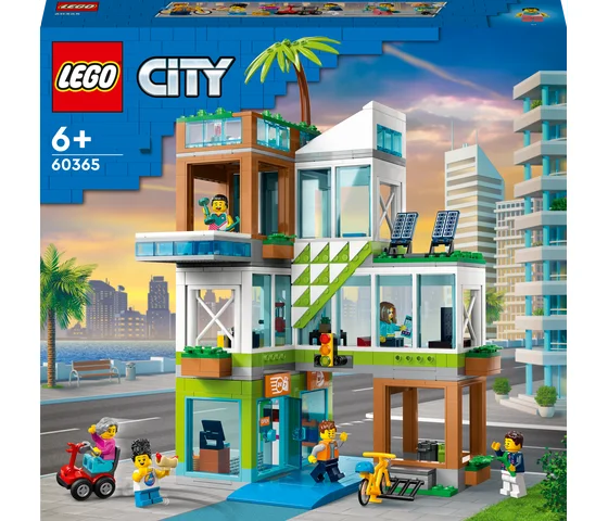 - Aanpasbaar flatgebouw – dit LEGO® City Appartementsgebouw (60365) wordt geleverd met modulaire kamers en leuke personages voor kinderen die van realistisch spel houden