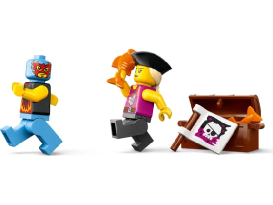- Grappige kenmerken en functies – kinderen kunnen LEGO® elementen lanceren vanuit de guacamolewerper of speelgoedvissen uit de schatkist kieperen om hun tegenstander te vertragen en de race te winnen