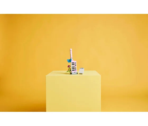 LEGO fans hebben de keuze uit 3 verschillende bloemensets om te bouwen: een typemachine met bloemen, een keytar speelgoedinstrument op een standaard met bloemen of een bloempot met een pen en notitieboekje. De speelset bevat ook 3 stickers met mooie zinnen die kinderen kunnen gebruiken hun modellen te versieren.