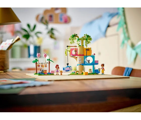 - Bedenk verhalen met de LEGO® Friends personages – deze fantasieset bevat minipoppetjes van Leo en Paisley, 5 kattenfiguren, een bouwbare kattenboomhut en een bouwbare verjaardagstaart