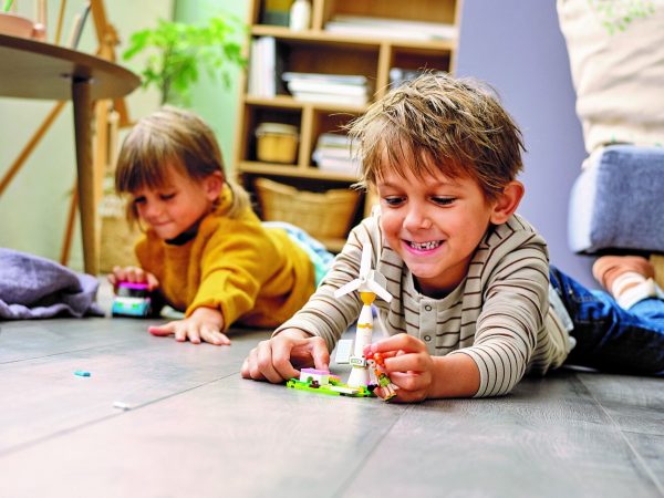 Deze LEGO® Friends speelset is inclusief 2 minipoppetjes en een puppyfiguur, plus een bouwbare auto. Er is ook een laadstation met een speelgoedwindturbine en een plek om te picknicken.