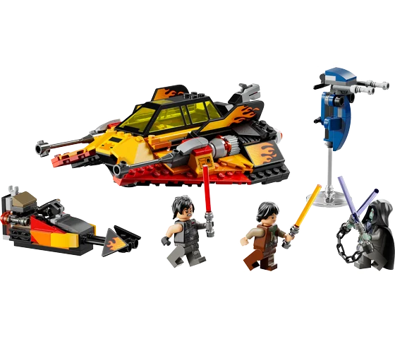 Deze bouwbare speelset bevat ook de allereerste LEGO Star Wars minifiguren van Sig Greebling, Darth Dev en Solitus. Elk personage is uitgerust met een lichtzwaard, inclusief het dubbele lichtzwaard van Solitus met een ketting. Bovendien heeft Solitus een coole STAP voor nog meer actie. De set bevat 349 onderdelen.