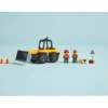 - Wat zit er in de doos? – dit bouwplaatsspeelgoed bevat een bouwbare wiellader, minifiguren van een bestuurder en een wegwerker, een verkeersbord, verkeerskegels en een drilboor