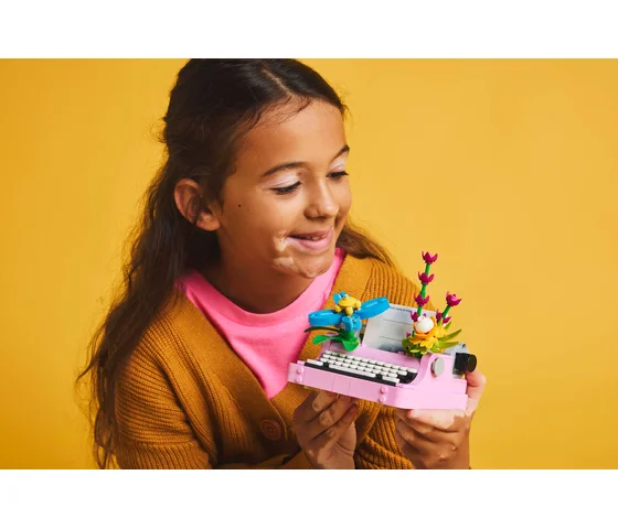 Verras jonge fans van bloemen, kunst en design met deze LEGO® Creator 3in1 Typemachine met bloemen (31169) speelset. Deze kleine typemachine voor meisjes en jongens vanaf 8 jaar is versierd met 4 kleurrijke bloemen om zelf te bouwen en heeft een beweegbaar toetsenbord en wagen, plus een vel papier van LEGO stenen.