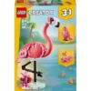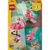 Met deze LEGO set krijgen kinderen 3 verschillende bouwmogelijkheden met dezelfde set stenen: een roze flamingo met een beweegbare kop op een met planten bedekte standaard, een verstelbare roze kaketoe die zijn kop 360 graden kan draaien of een schattige verstelbare roze axolotl met onderwaterplanten.