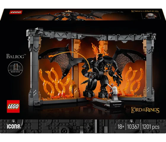 Creëer een inkijkje in Midden-aarde met de LEGO® Icons Boekensteun: The Lord of the Rings – Balrog™ (10367), een geweldig cadeau voor boekenliefhebbers en fans van de legendarische filmtrilogie. Zet de boekensteun tussen je favoriete romans en werp een blik in de fantasiewereld van J.R.R. Tolkien of open het model en bewonder Gandalfs epische confrontatie met de Balrog op de Brug van Khazad-dûm.