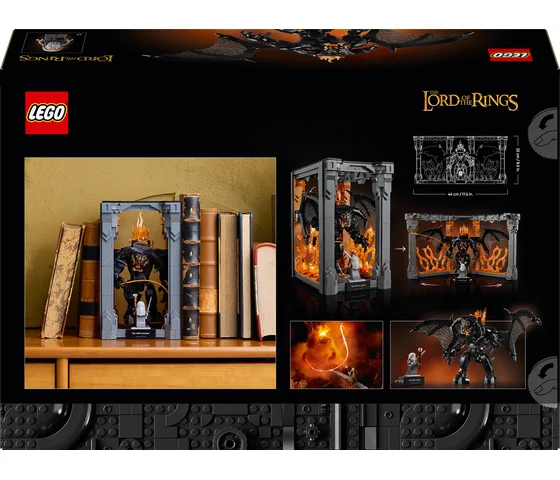 - Kenmerken en functies – open de boekensteun en bewonder een weergave van de confrontatie op de Brug van Khazad-dûm. De minifiguur van Gandalf de Grijze en de figuur van de Balrog™ zijn afneembaar voor een dynamisch display