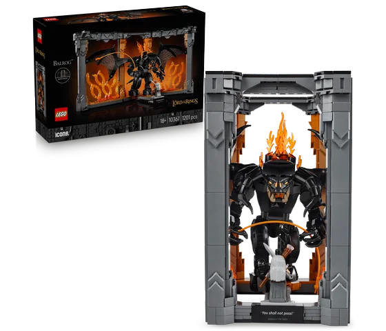 - Boekensteun met filmthema – creëer een inkijkje in Midden-aarde met de LEGO® Icons Boekensteun: The Lord of the Rings – Balrog™ bouwset voor volwassenen
