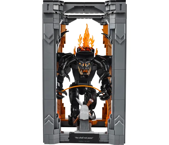 Het model heeft een plaatje met de woorden ‘You Shall Not Pass’ en toont Gandalf de Grijze in een onverschrokken houding en de Balrog met zijn machtige vleugels tegen een achtergrond van woeste vlammen. Beide personages zijn afneembaar en de minifiguur van Gandalf heeft een staf en zwaard. De Balrog hanteert een vurige zweep en heeft verstelbare ledematen en vleugels voor een dynamisch display.